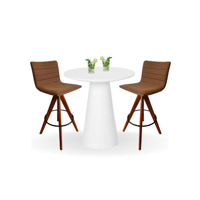 Conjunto Mesa Bistrô Cone 70 cm Laca Branca Base Altura 100 cm Laca Branca + 2 Banquetas Cercatto Gi