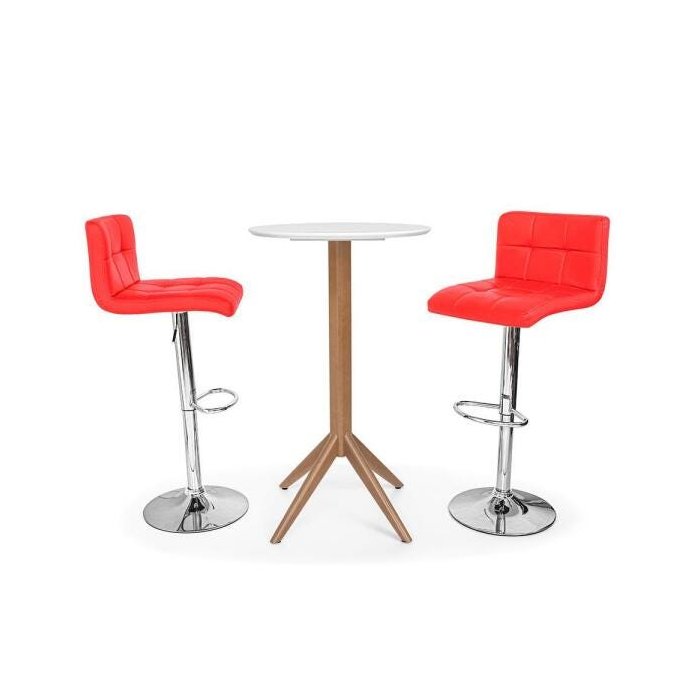 Conjunto Mesa Bistrô Geovana 60cm Branca com 2 Banquetas Gomos - Vermelha