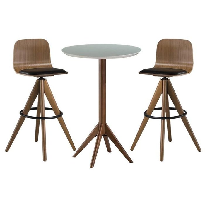 Conjunto Mesa Bistrô Lier e 2 Banquetas Estofadas Menen 166 - Bella Brasil Decor Pu Bege Base Girató