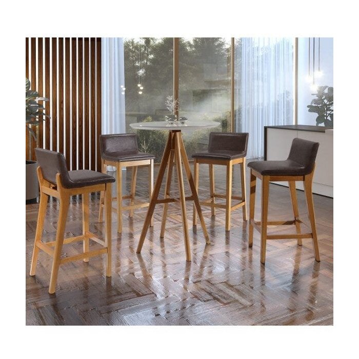 Conjunto Mesa Bistrô Tampo de Vidro com 4 Banquetas Buarque Móveis Rafana Cinamomo/Marrom Escuro