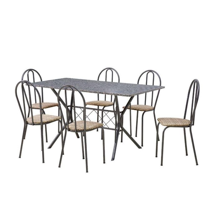 Conjunto Mesa Bruna 140cm 6 Cadeiras 004 Tampo Em Granito Marrom