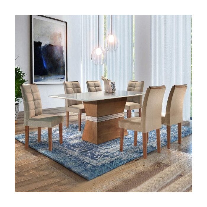 Conjunto Mesa Capri Tampo Smart Vidro 6 Cadeiras Napoles Cel Móveis
