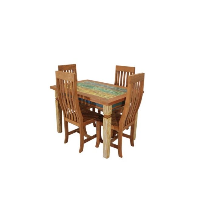 Mesa Chipre com Pátina 1,10m e 4 cadeiras Encosto Curvo, construídas com madeira de demolição Peroba Rosa.
