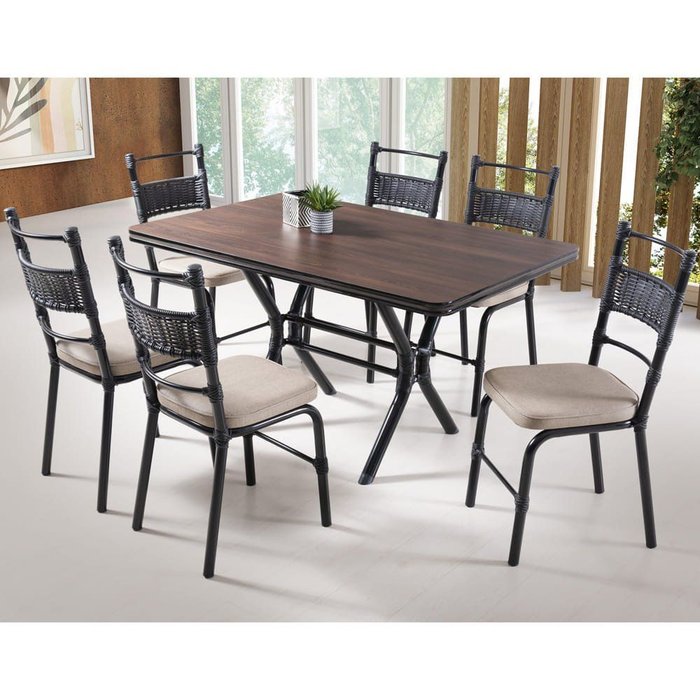 Conjunto Mesa com 6 Cadeiras Degata Nvb Ameixa Preto Bege