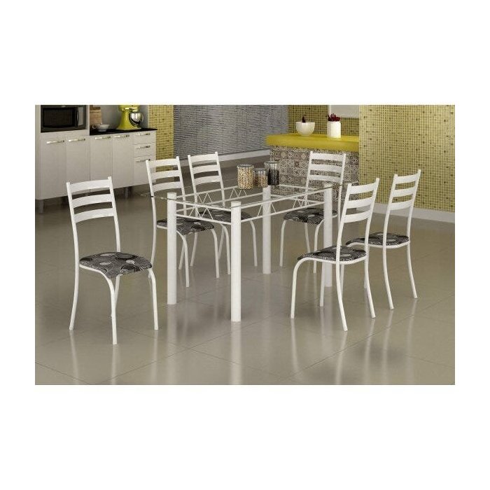 Conjunto Mesa com Tampo Vidro e 6 Cadeiras Incolor/Branco/Paraopeba