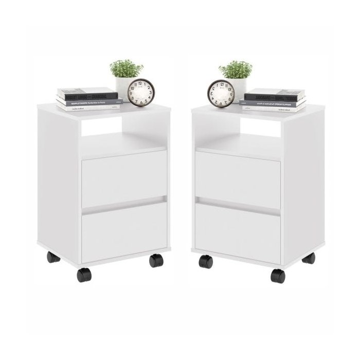 Conjunto Mesa de Cabeceira com Rodízios Nadi Branco