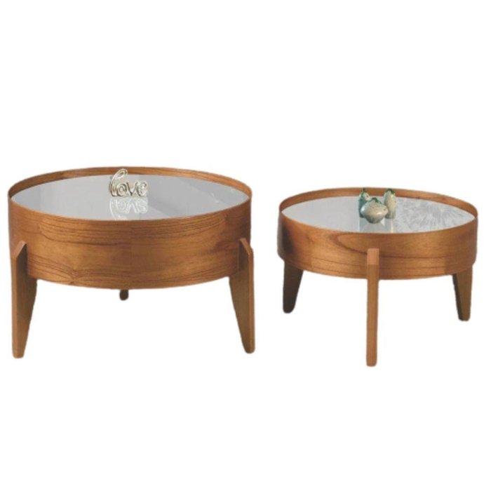 Conjunto Mesa de Centro Anna com Tampo Off White e Pés em Madeira