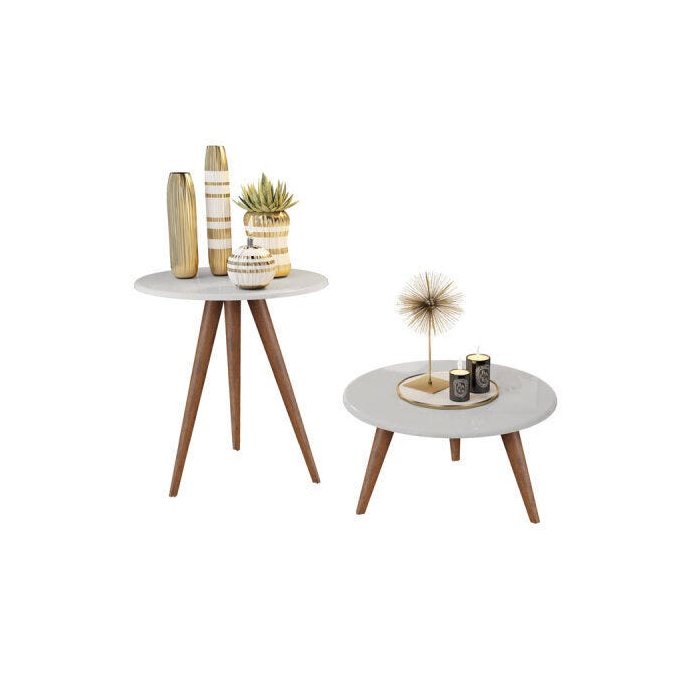 Conjunto Mesa de Centro e Mesa Lateral Retrô Branco - G4 Magazine