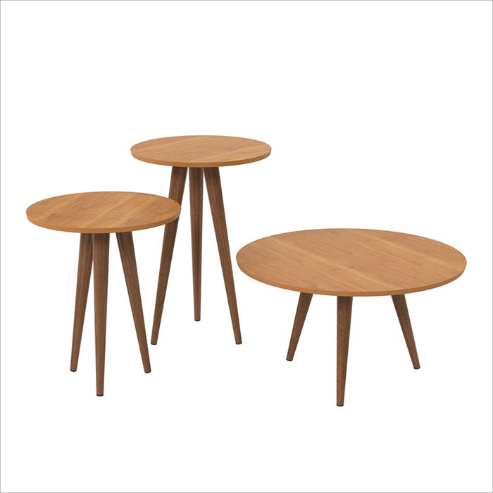 Conjunto Mesa de Centro/lateral/apoio Decorativa Slim Cinamomo Redonda Pés Palito - Patrimar Móveis