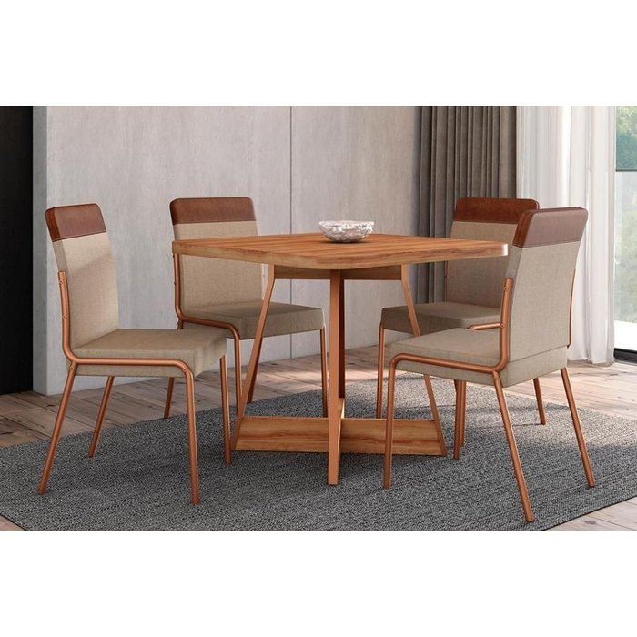 Conjunto: Mesa de Cozinha Átria 1593 Aço C/ Tampo Madeirado 90x90cm e 4 Cadeiras Duo Rose/freijó/ Rose/Freijó/Nogal - Rose/Areia - Caramelo