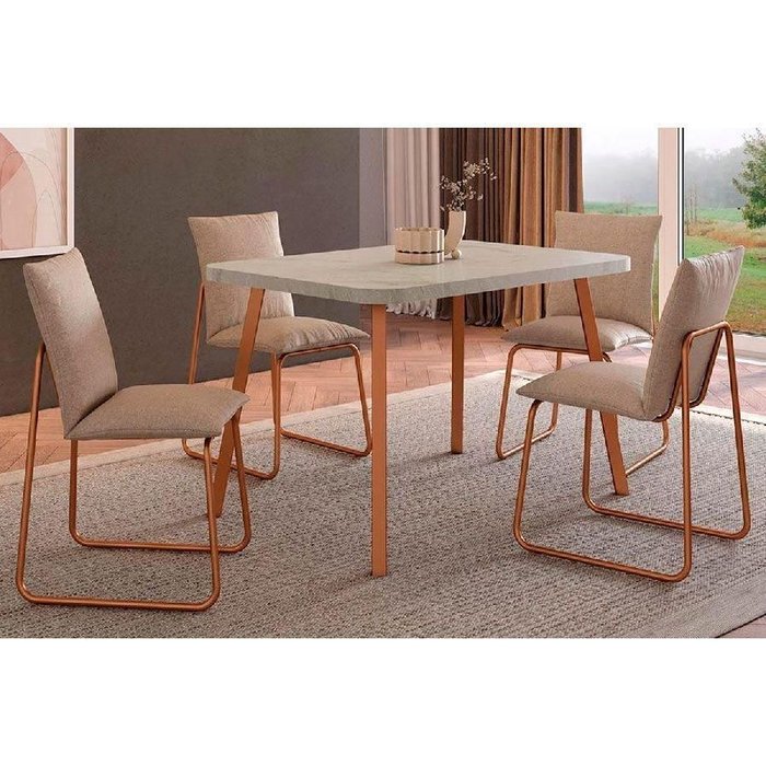Sala de Jantar Completa Stellar 1598 Aço c/ Tampo Madeirado 120x80cm e 4 Cadeiras Soft Rose/Petra - Rose/Areia - Carraro