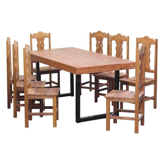 Conjunto Mesa de Jantar 2 M 8 Cadeiras Paris em Madeira Maciça e Ferro