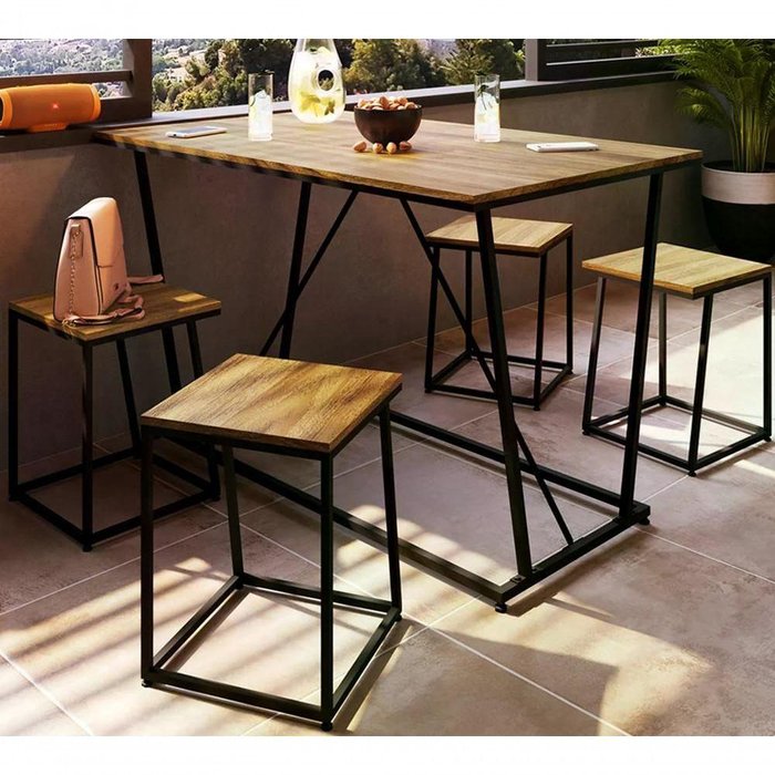 Conjunto Mesa De Jantar 4 Banquetas Baixa Preto Noce Oro Pp