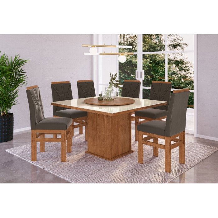 Conjunto Mesa de Jantar Cairo Tampo Vidro 6 Cadeiras Madeira Valentina Canela/off White/chocolate Es