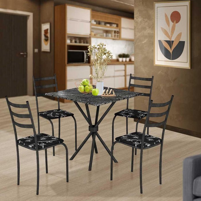 Conjunto Mesa de Jantar com 4 Cadeiras Preto Amazonas Shop Jm