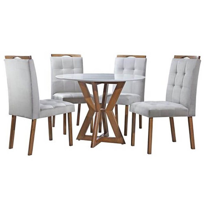 Conjunto Mesa de Jantar com 4 Cadeiras Tampo Redondo Ibiza Art Assentos