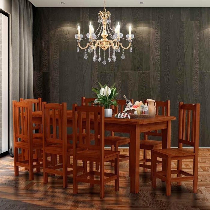 Conjunto Mesa de Jantar com 8 Cadeiras Madeira Maciça 200cm Castanho Santana Shop Jm