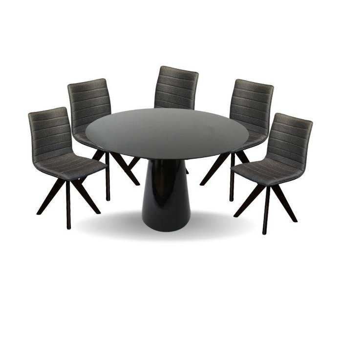 Conjunto Mesa de Jantar Cone 120 cm Laca Preta com Cadeiras Cercatto Giratória Revestida em Tecido L