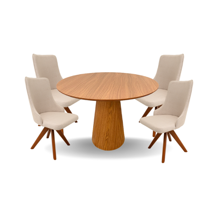 Conjunto Mesa de Jantar Cone 90 cm Freijó Com 4 Cadeiras Roma Giratória Personal Decor Marrom Marrom