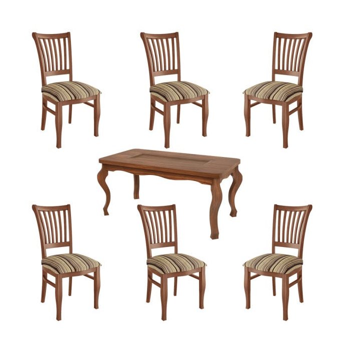 Conjunto Mesa de Jantar Gaules 180cm com 6 Cadeiras Perseu MDF Imbuia - Gran Belo