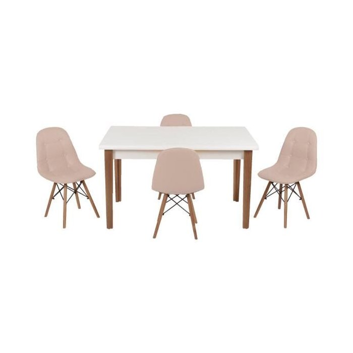 Conjunto Mesa de Jantar Juliette Branca 135cm com 4 Cadeiras Botonê - Nude