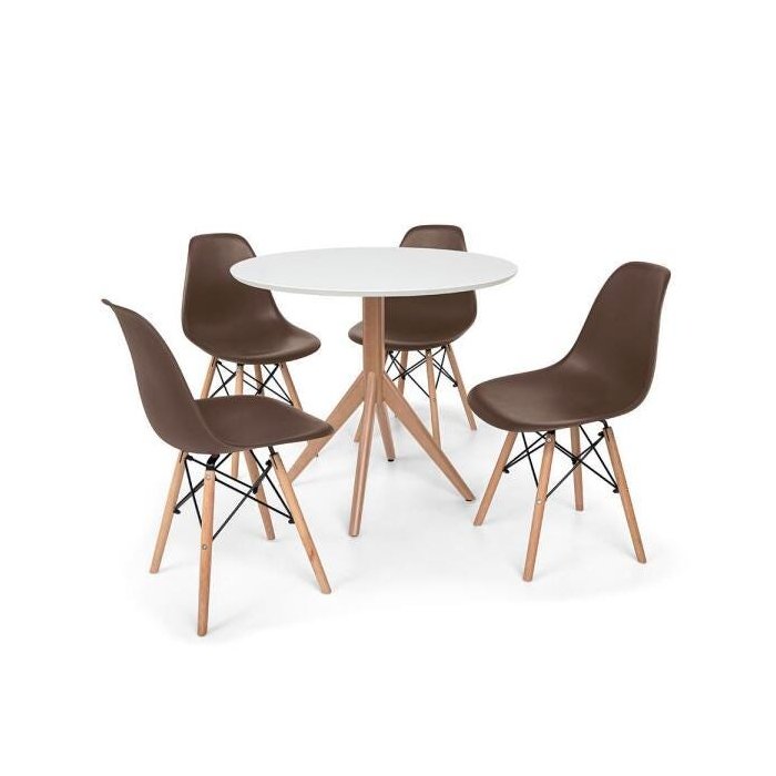 Conjunto Mesa de Jantar Maitê 80cm Branca com 4 Cadeiras Charles Eames - Marrom