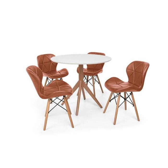Conjunto Mesa de Jantar Maitê 80cm Branca com 4 Cadeiras Eames Eiffel Slim - Marrom