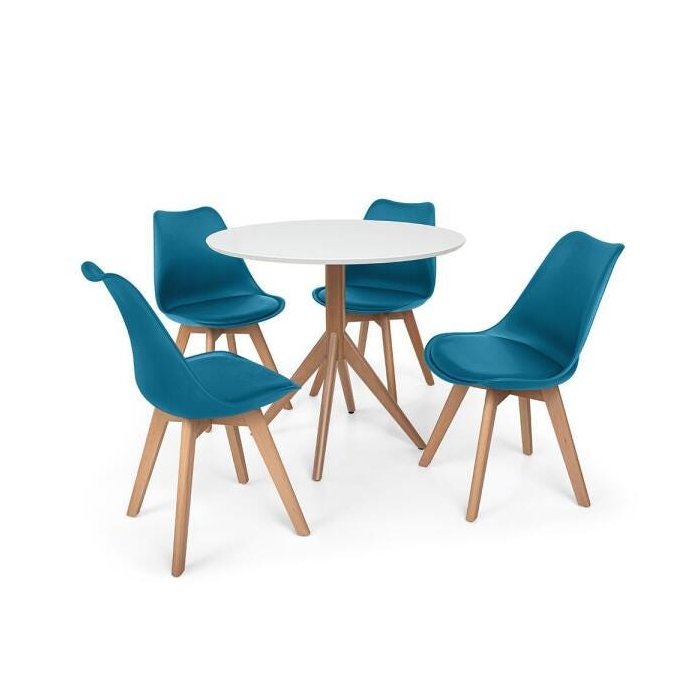 Conjunto Mesa de Jantar Maitê 80cm Branca com 4 Cadeiras Eames Wood Leda - Turquesa