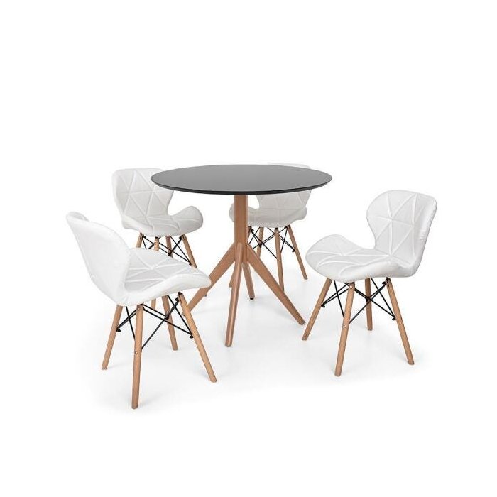 Conjunto Mesa de Jantar Maitê 80cm Preta com 4 Cadeiras Eames Eiffel Slim - Branca Preto