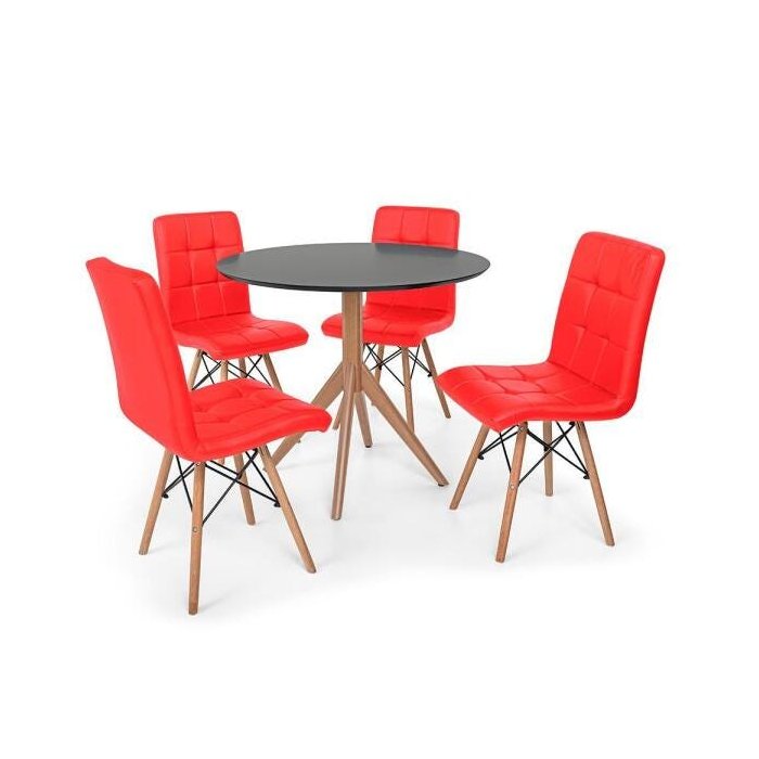 Conjunto Mesa de Jantar Maitê 80cm Preta com 4 Cadeiras Eiffel Gomos - Vermelha