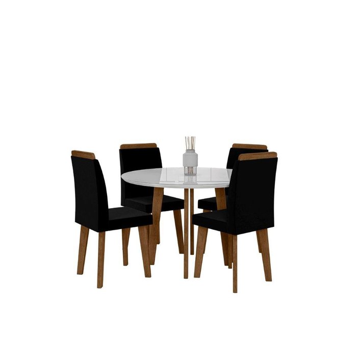 Conjunto Mesa de Jantar Malina 4 Lugares Sala Redonda com Vidro Modelo Retrô com Pés em Madeira Cor