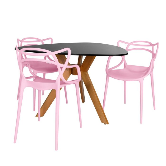Conjunto Mesa de Jantar Orgânica Nina 120cm Preta com 3 Cadeiras Allegra - Rosa