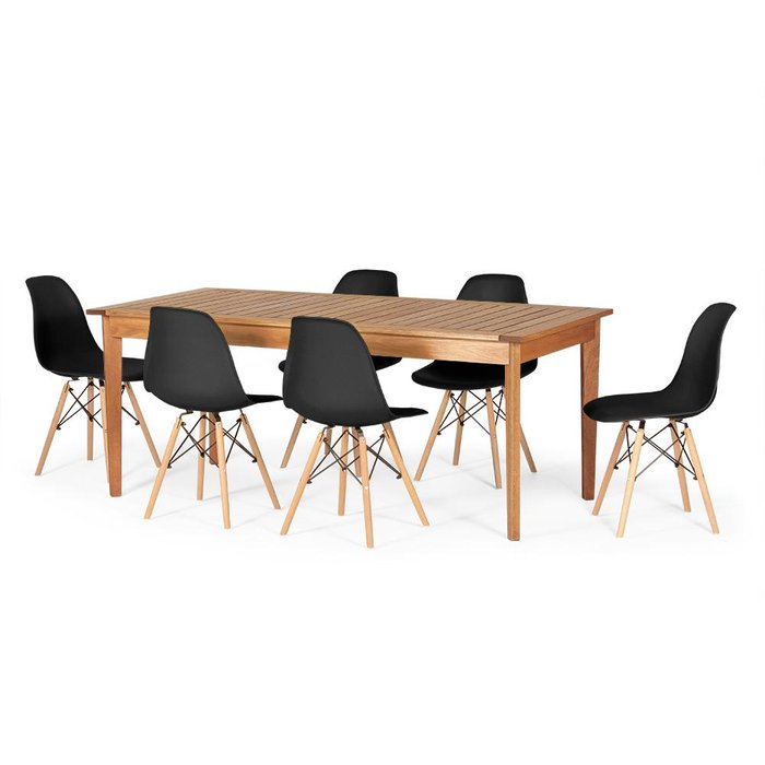 Conjunto Mesa de Jantar Retangular em Madeira Maciça 186cm com 6 Cadeiras Eames Eiffel - Preto