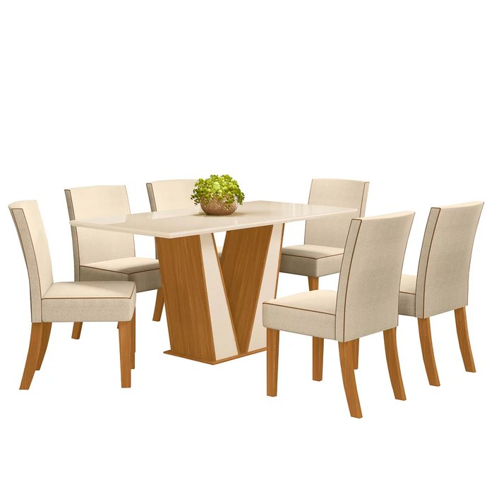 Reunir a família naquele almoço de domingo é muito bom, com a mesa de jantar Gabi retangular espaçosa, linda e cheia de qualidades ficará ainda melhor! Venha conferir esse belíssimo conjunto...