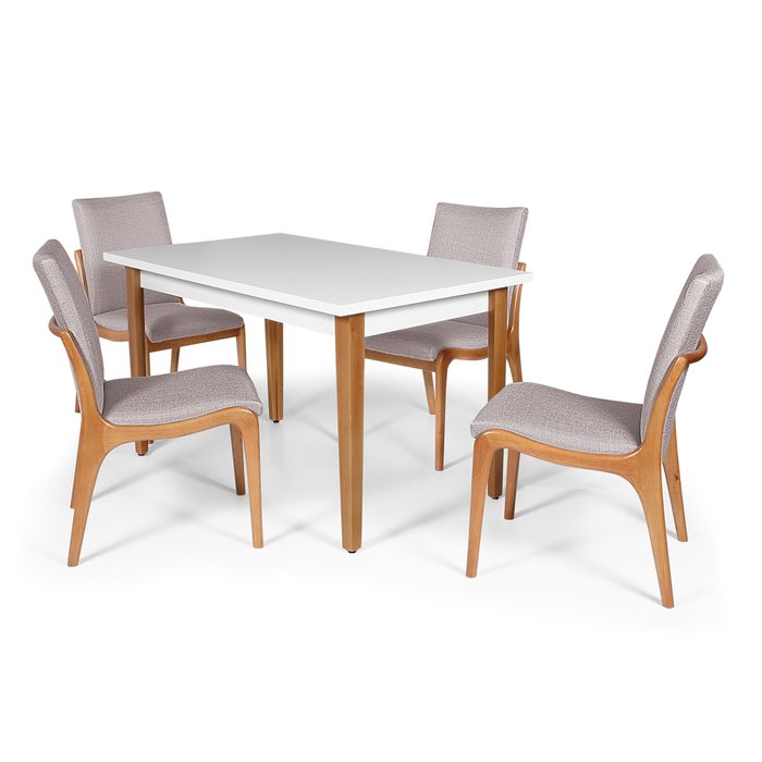 Conjunto Mesa de Jantar Retangular Mabel 135x80cm Branca com 4 Cadeiras Estofada em Madeira Garbo Ci