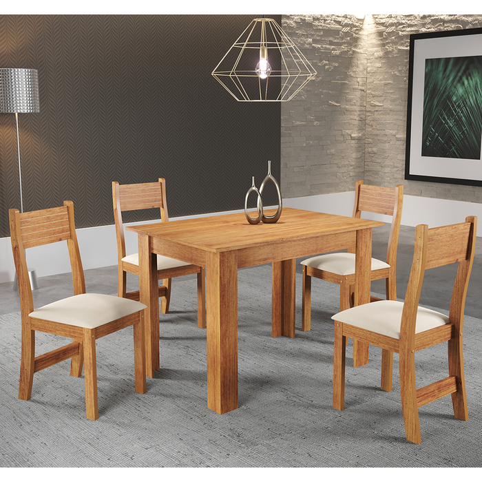 Conjunto Mesa de Jantar Retangular Palace Mel 4 Cadeiras Sol Linho Bege - Casa Giulia