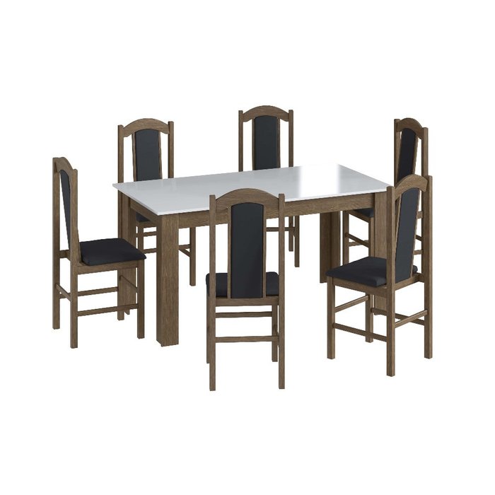 Conjunto Mesa de Jantar Retrô 6 Cadeiras 1 Cristaleira Móveis Canção