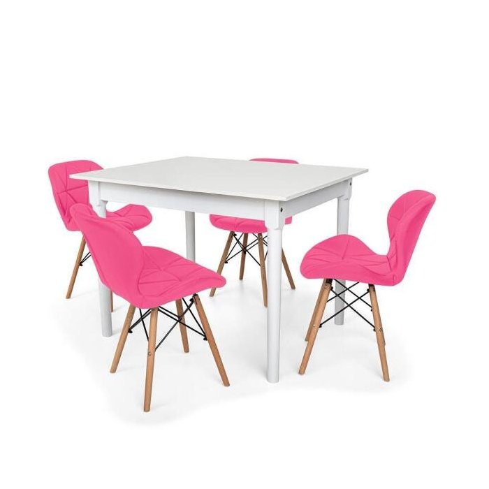 Conjunto Mesa de Jantar Robust 110x90 Branca com 4 Cadeiras Eames Eiffel Slim - Rosa