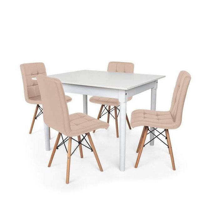 Conjunto Mesa de Jantar Robust 110x90 Branca com 4 Cadeiras Eiffel Gomos - Nude