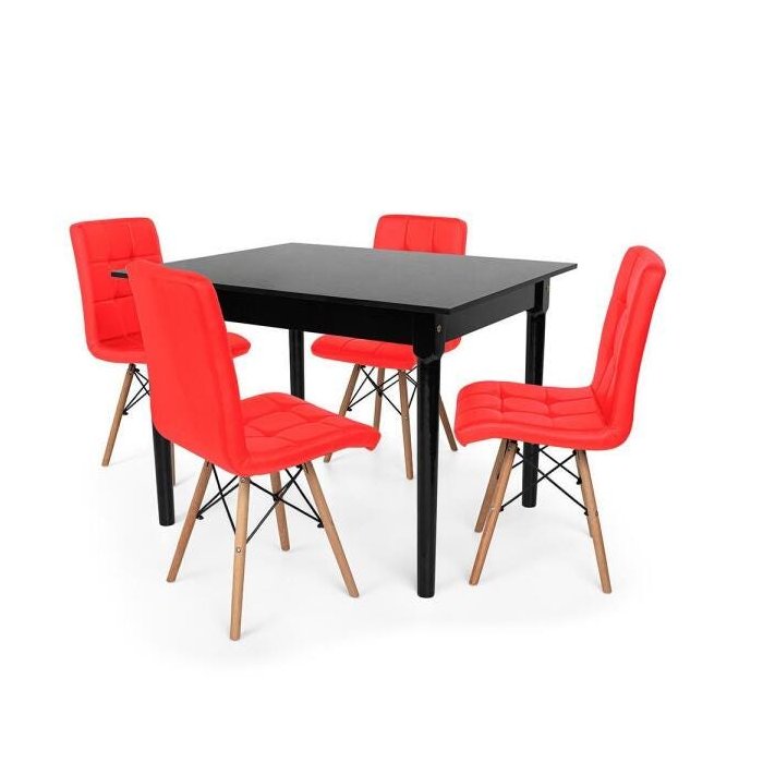 Conjunto Mesa de Jantar Robust 110x90 Preta com 4 Cadeiras Eiffel Gomos - Vermelha Preto