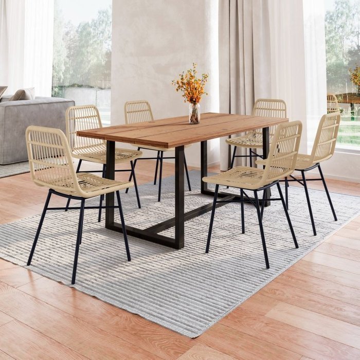 Conjunto Mesa de Jantar Rústica de Madeira Maciça com 6 Cadeiras Nassau