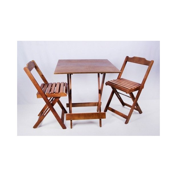 Conjunto Mesa de Madeira Dobrável com 2 Cadeiras - Imbuia