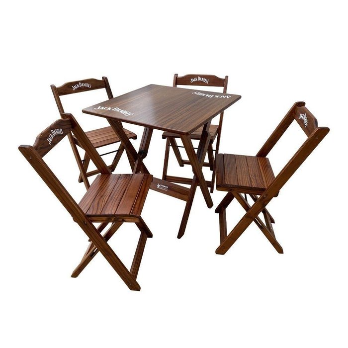 Conjunto Mesa Dobrável Madeira 70x70 Com 4 Cadeiras Jack Imbuia