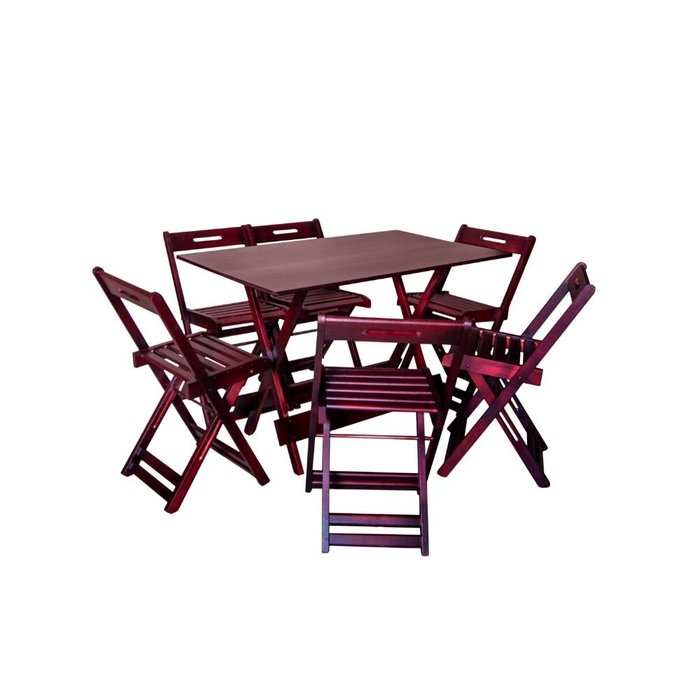 Conjunto Mesa Dobrável Retangular 120x70 com 6 Cadeiras em Madeira Maciça Mogno - Straub Web