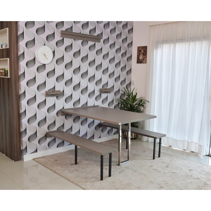 Conjunto Mesa Dobrável Retrátil de Parede INOX Com Bancos 1,40m Volpi -