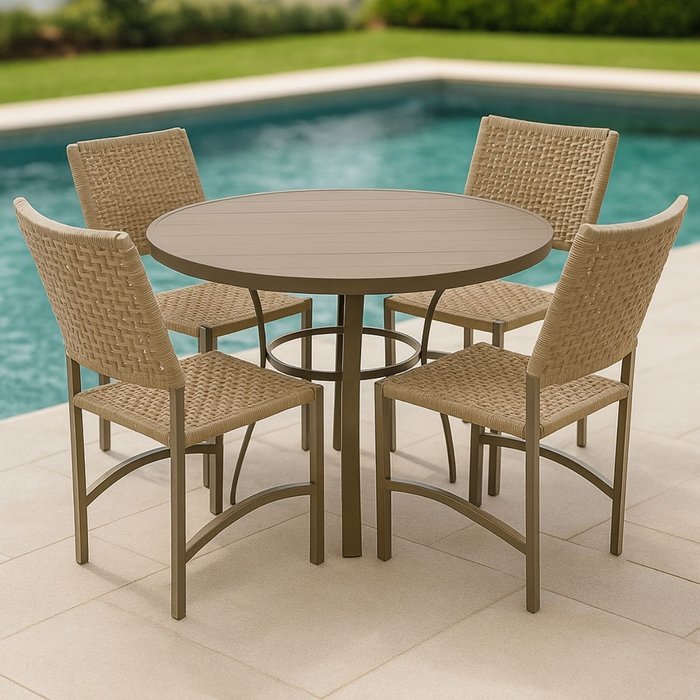 Conjunto Mesa Dubai em Alumínio Ripado 1,00m com 4 Cadeiras Corda Náutica Bege