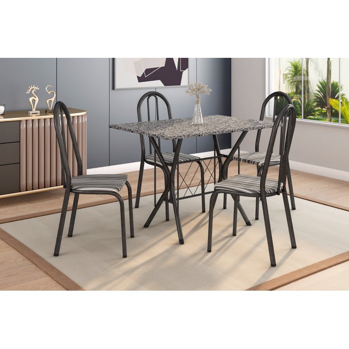 Conjunto Mesa Duma Mármore Pés de Ferro + 4 Cadeira Estofada:Tampo Marmore Tampo Marmore