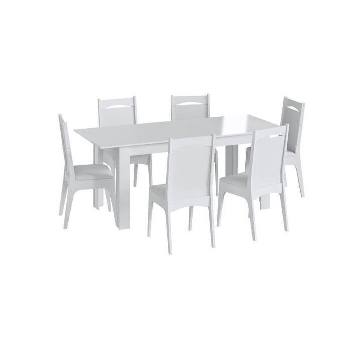 Conjunto Mesa Elástica 6 Cadeiras MDF Branco Lilies Móveis