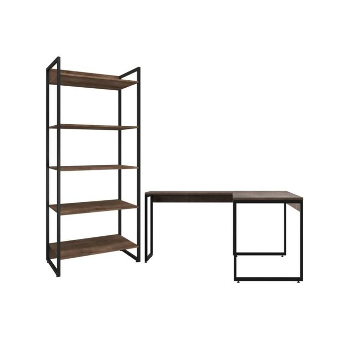 Conjunto Mesa em L e Estante Nick Castanho Preto