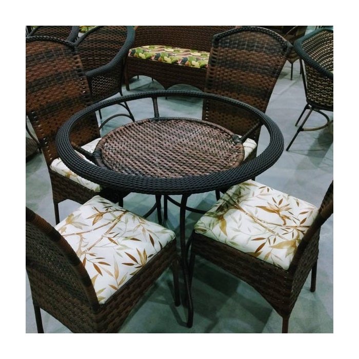 Conjunto Mesa Fibra Sintética Vime e 4 Cadeiras
